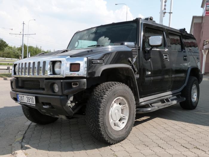 Hummer H2 2003 Luxury - schválený na ŘP sk. "B" (do 3500 kg), interier kůže, šest sedadel, nový, legálně zapsaný LPG - úsporný provoz, pneumatické zvedání zadní nápravy, tažné zařízení, stroboskopy, neony atd... PRODÁNO - možnost objednání jakéhokoli vozu z USA.