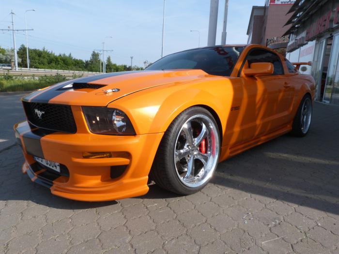 Ford Mustang GT520 GeigerCars - jediný na světě, naprostý unikát. Exterier v oranžové, interier v černé kůži. Motor z GT500 SHELBY s výkonem zvedlým na 480 kW, kompletně přestavěný vůz, audio vestavba o výkonu 10 000W v ceně 40 000,- EUR, šestipístkové brzdy Brembo - více o voze například zde: http://www.auto.cz/ford-mustang-gt520-od-geigercars-oranzova-raketa-13182 (dnes již má vůz jiný, nový motor vestavěný v USA v Californii) nebo kdekoli na netu po zadání ´´GT520´´ . Mustang jezdil rok po výstavách v celém světě, existuje pouze v jednom exempláři.